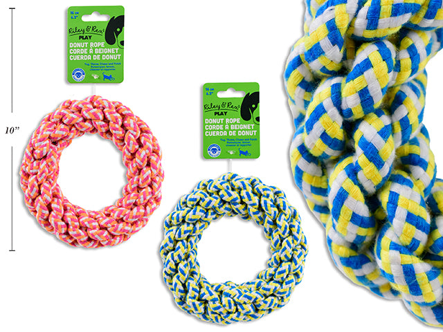 Carton of 12 6.3in(D) Polyester Donut Rope Dog Toy. 2 Asst.Colours. h/c.