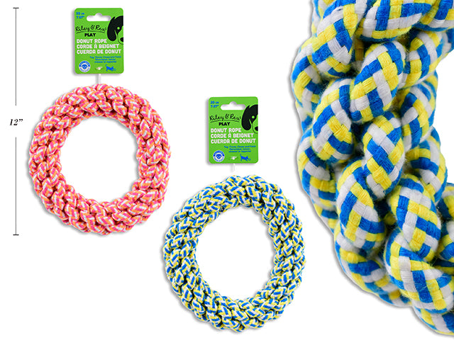 Carton of 12 7.87in(D) Polyester Donut Rope Dog Toy. 2 Asst.Colours. h/c.